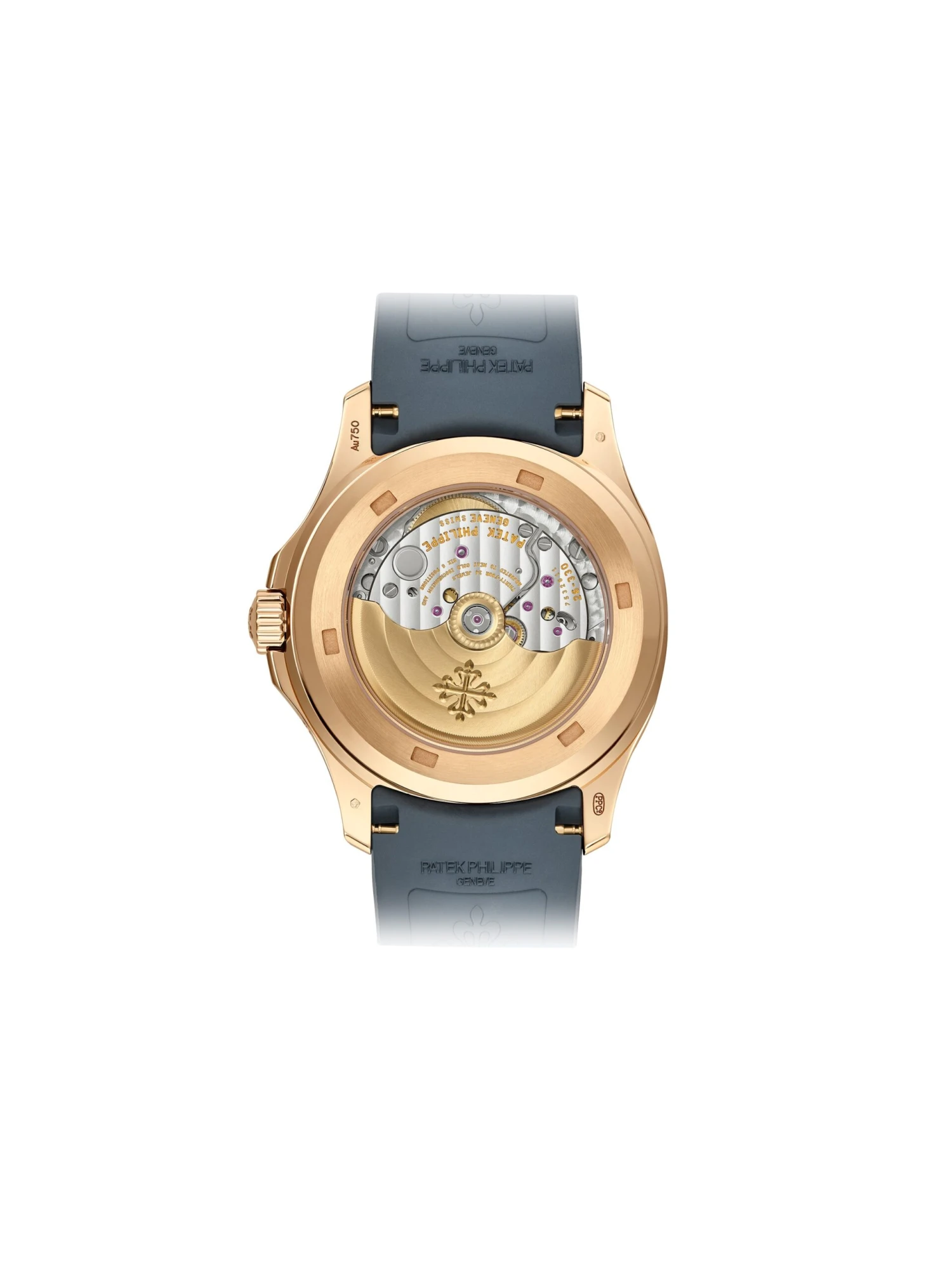 A distinctive design with useful functions. With the Ref. 5261R-001, Patek Philippe offers a sporty-chic timepiece for ladies in the Aquanaut Luce collection. As a new feature, it is equipped with the brand’s patented annual calendar, which requires only one manual correction per year, at the end of February. The iconic bezel with its eight rounded corners encloses a blue-gray dial with an embossed Aquanaut pattern and applied numerals and hands in 18k rose gold. Inside the 39.9 x 10.9 millimeter 18k rose gold case, there is self-winding Caliber 26 330 S QA LU with an annual calendar, a center seconds hand, and a date and moon-phase display. The stylish ladies’ watch is paired with a matching rubber strap that also features the Aquanaut pattern.