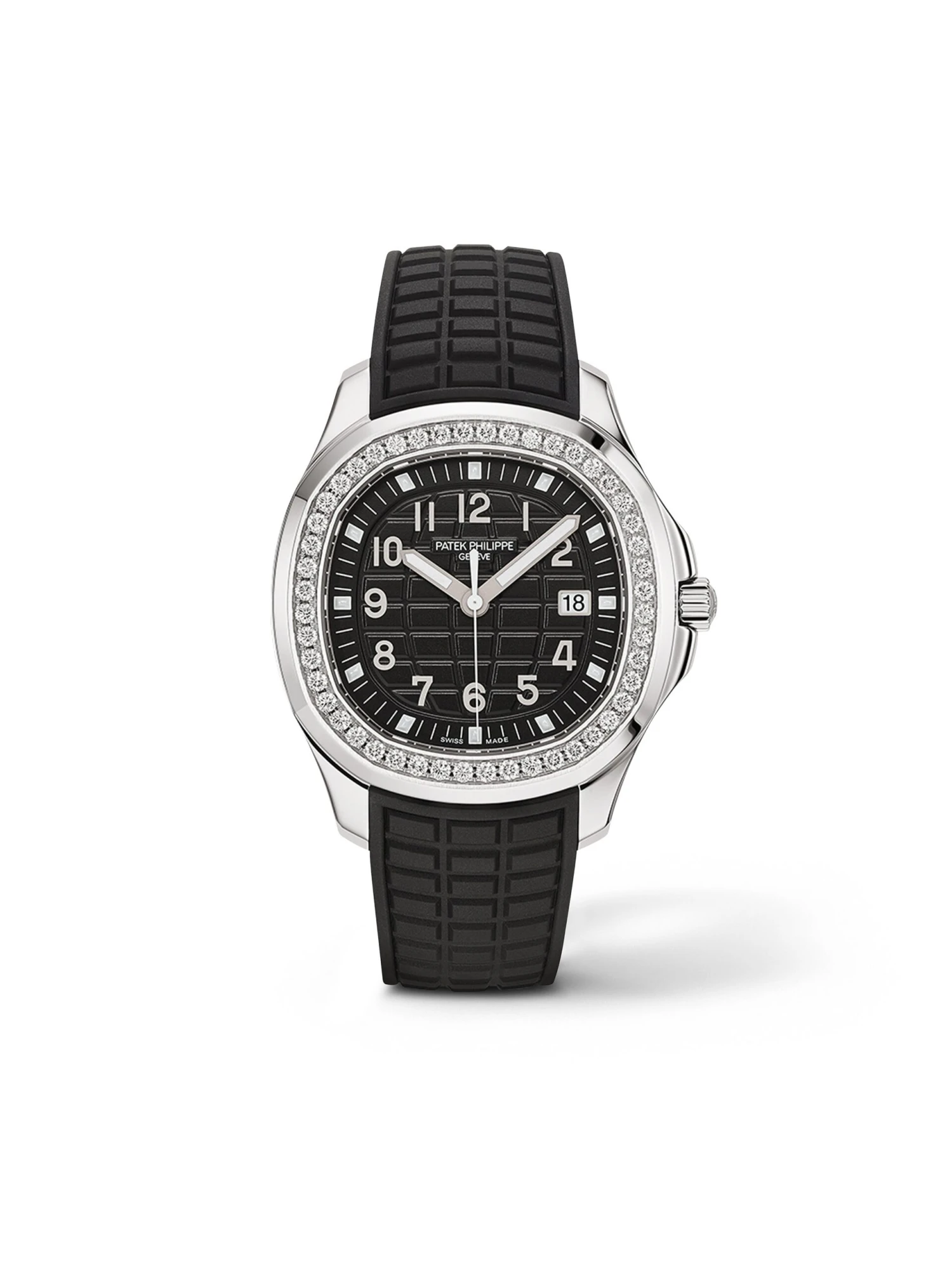 Patek Philippe has redesigned the Aquanaut Luce for ladies more than 15 years after its launch, but remains faithful to the Italian meaning of its name: The characteristic, gently rounded octagonal bezel is set with 48 internally flawless Top Wesselton brilliant-cut diamonds of 1.11 ct and sparkles and glitters like pure sunshine. The stainless steel case of the three-hand watch has a generous diameter of 38.8 millimeters instead of 34.6 in the former version and is water-resistant up to 120 meters thanks to a screw-in crown. The typical embossed pattern of the dial is perfectly showcased in a beautiful black. The applied Arabic numerals and bold baton hands in white gold coated with luminous mass make a powerful contrast against their background. The Aquanaut Luce for ladies Ref. 5267/200A-001 is powered by the manufacture’s precise quartz movement E 23-250 S C. The integrated strap made of a water, abrasion and UV-resistant composite material matches the color of the dial and gives the timepiece a sporty and dynamic look.
