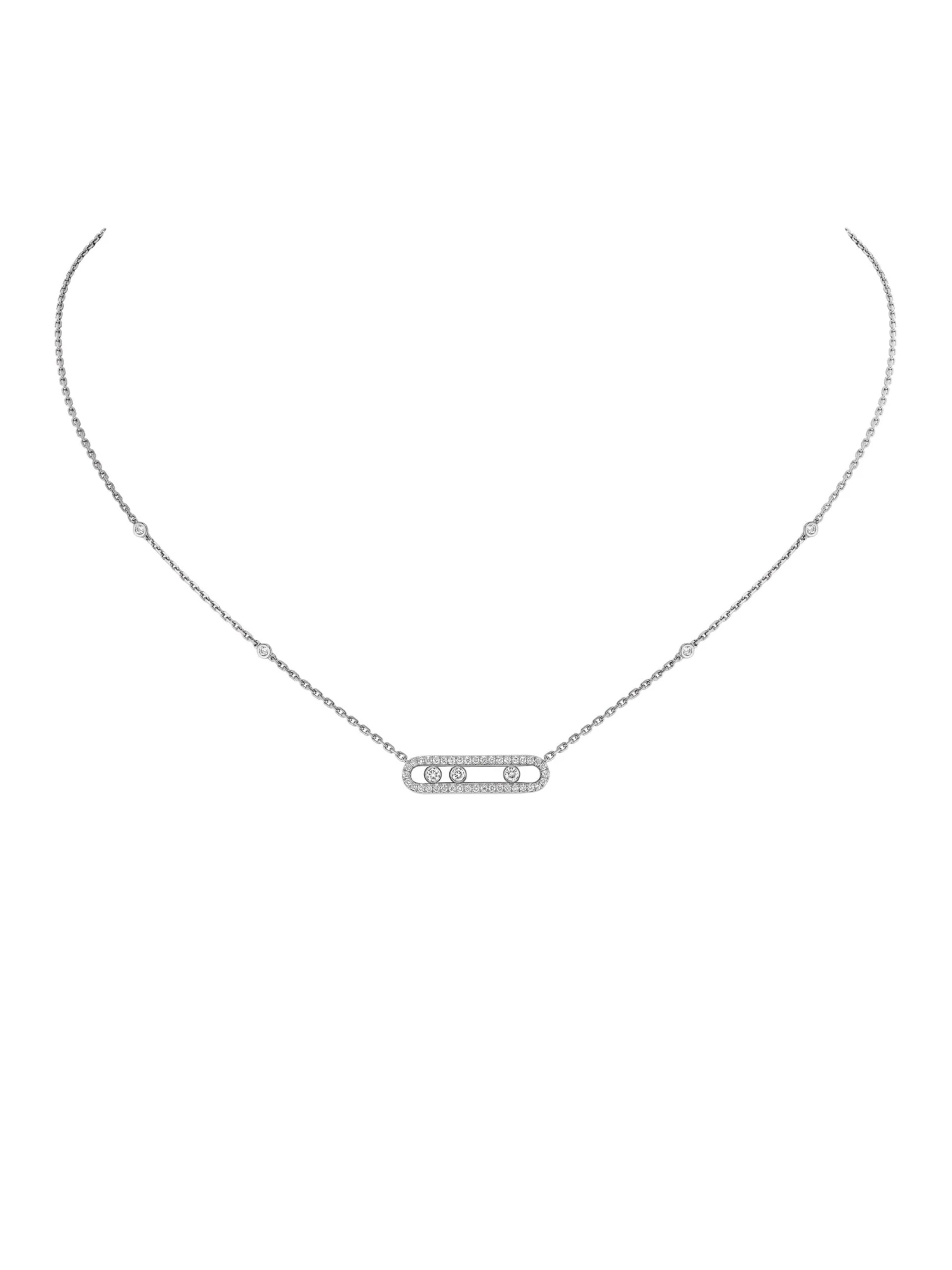 Capture all your special moments and turn each of them into a brilliant statement. The expressive eye-catcher of the Baby Move Pavé necklace from Messika in radiant 18k white gold is the collection’s signature Move cage with three freely moving diamonds that celebrate the love of yesterday, today and tomorrow. The diamond-studded cage comes on a 42-centimeter necklace that is adorned with another four diamonds. A piece of jewelry in a clear, graphic design that you will never want to take of again.
