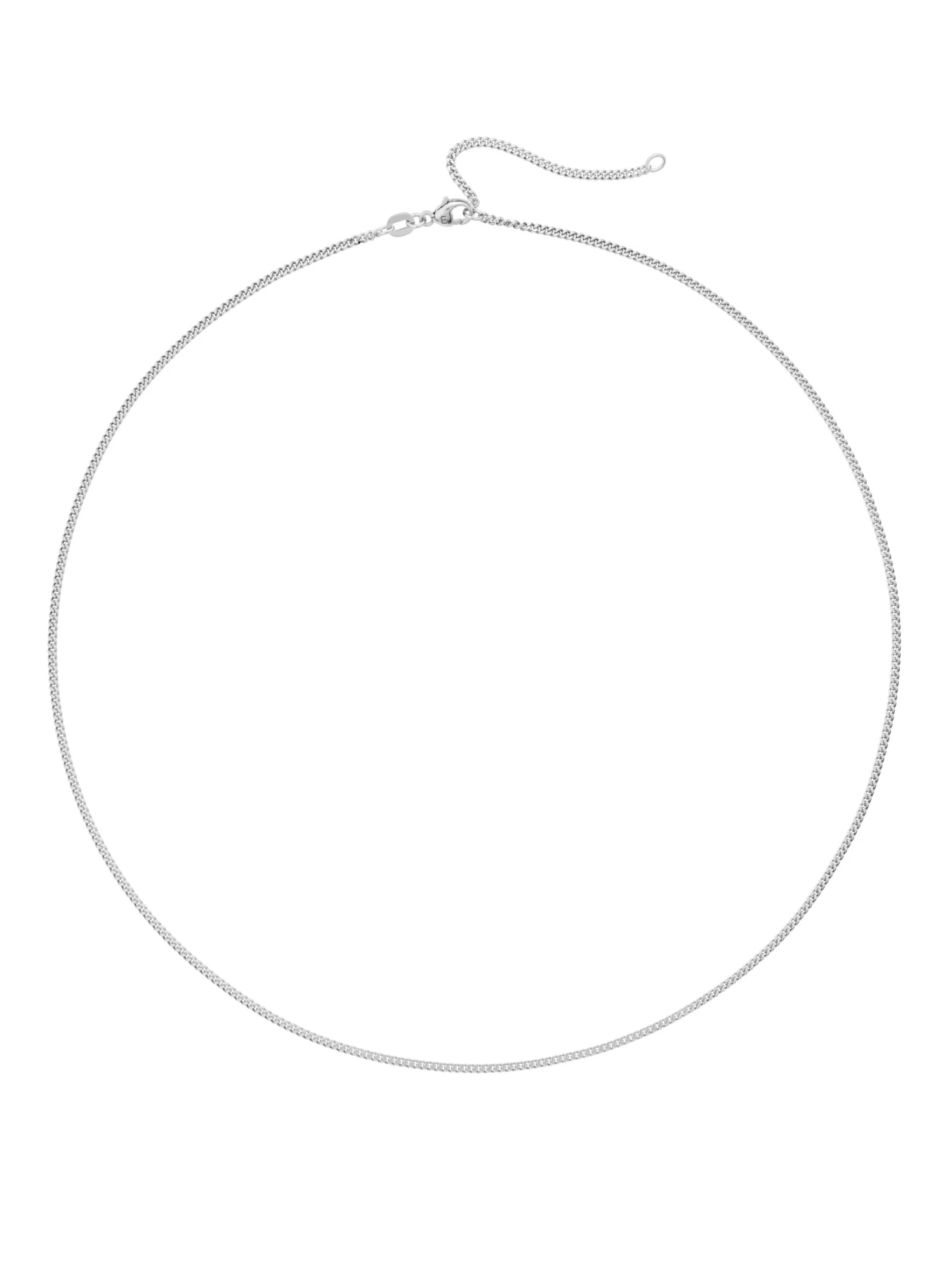 The necklace in 18k white gold from the Basics by Wempe Classics line is a standard item in every jewelry box. The curb link chain has a diameter of 1.7 millimeters. The sleek necklace has a total length of 50 centimeters β at 45 centimeters there is a shortening eyelet to shorten the necklace even more. It is worn closer to neck and is very well-suited for pendants. A swivel-clasp lock ensures it is secure.