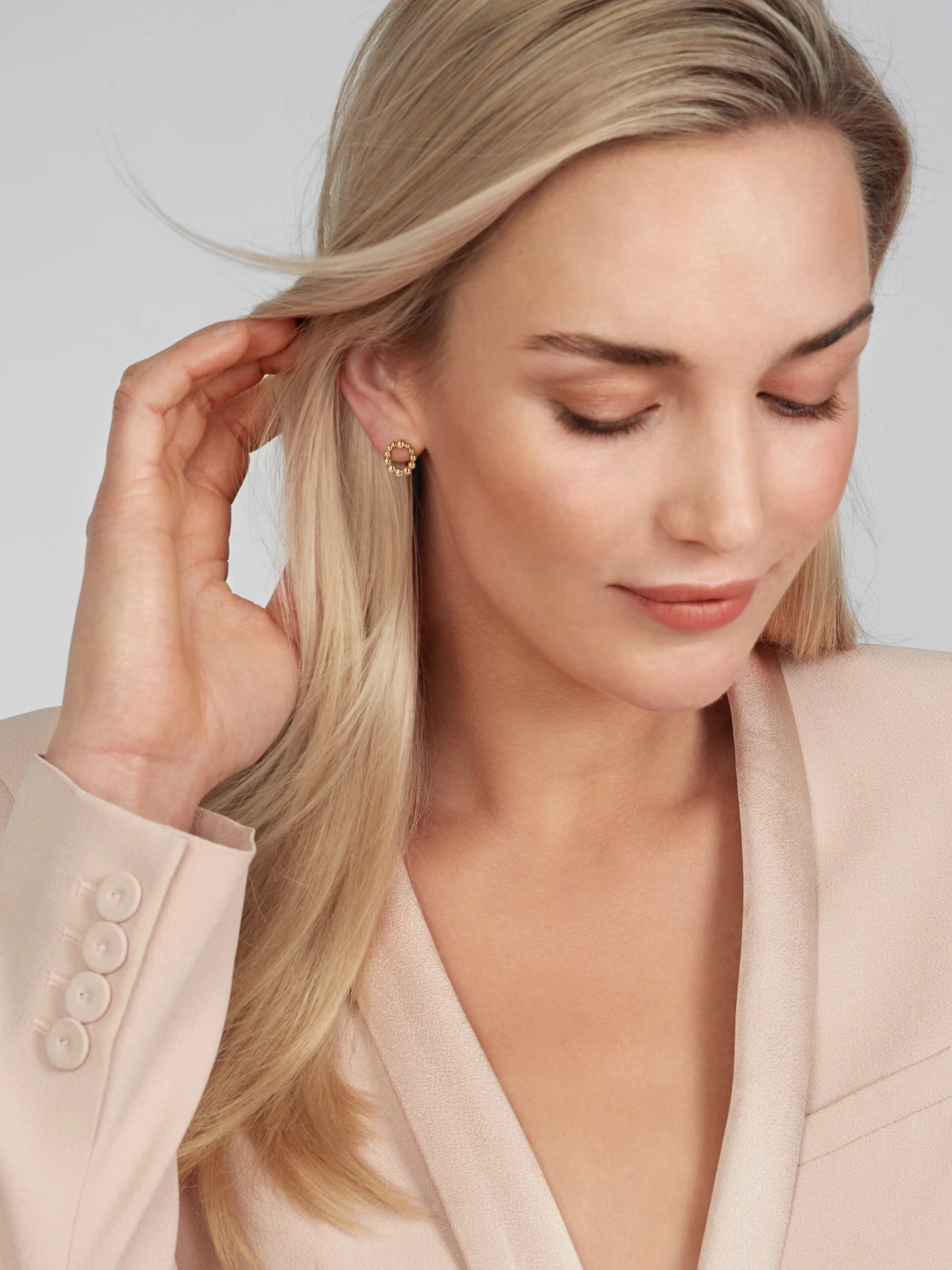 Without beginning and without end, the circle fascinates with its consummate perfection. The Blu XS BY KIM earrings in 18k rose gold have been designed with this in mind. Their subtle elegance suits the most varied of women and occasions. Even the smallest details are exciting: The geometric form of the circle is repeated in the fine, size-graduated arranged bead elements which seamlessly intertwine. A completely exquisite design that not only inspires purists.