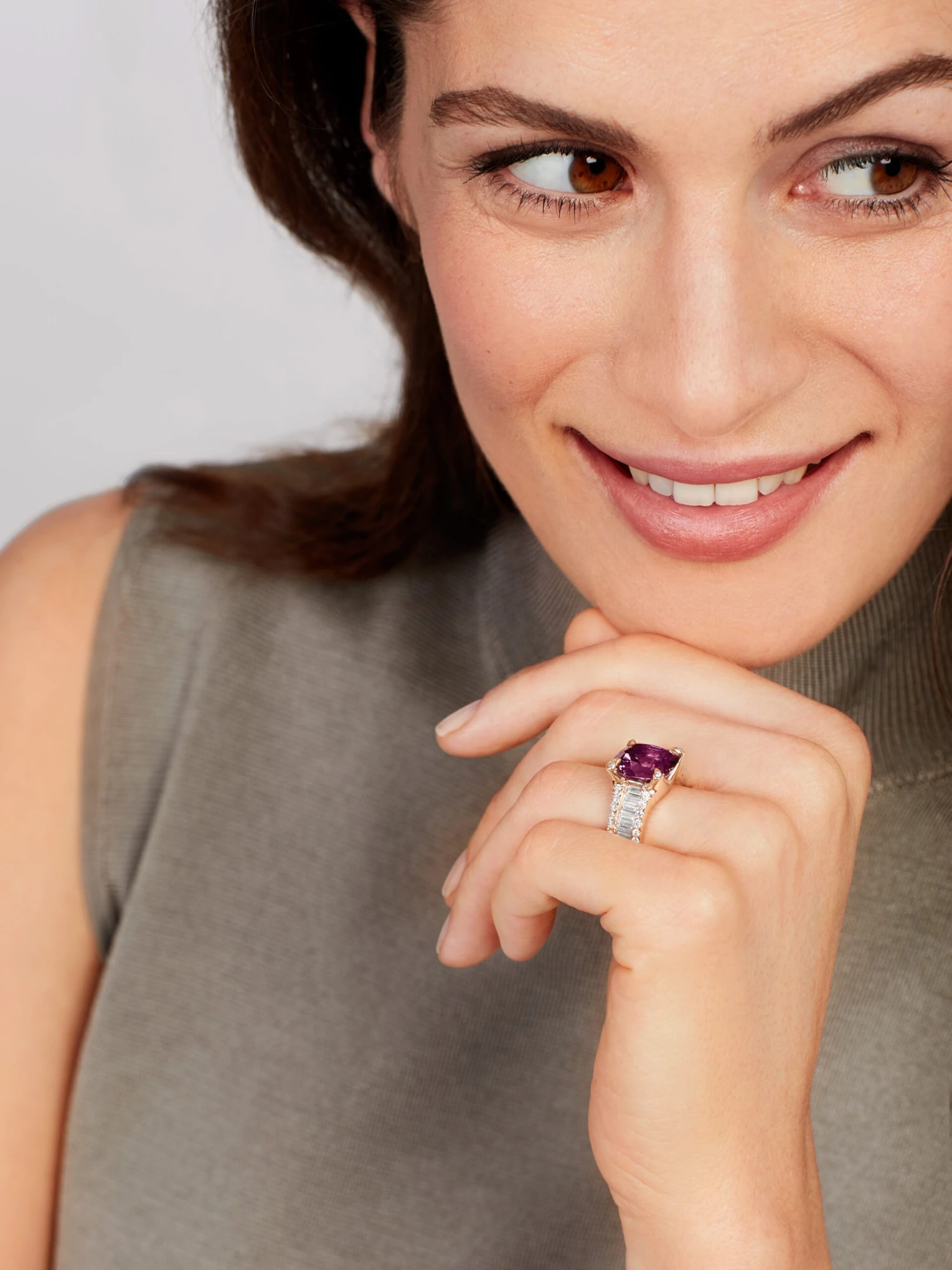 The Colonna BY KIM ring is more than a jewel: It is a jewelry highlight with triple the glamor factor. A dark red garnet 9.49 ct is enthroned in the center, the double ring band is adorned by 32 brilliant-cut diamonds 0.51 ct in total, and 14 more baguette-cut diamonds are assembled in a line between the two bands. A ring that will be enthusiastically admired and crown every occasion.