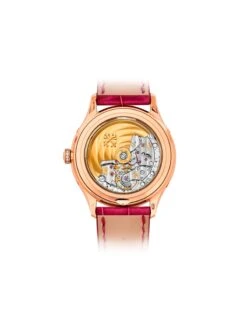 First debuted in 1996, this is one of the watchmaker’s most popular models. It features a patented annual calendar which displays the day of the week, date, and month. The clever mechanism of the 324 S AQ LU self-winding caliber requires manual correction only once a year, when changing from February to March. The 4947R-001 realizes this sophisticated complication – which also displays the moon phase – in an elegant and luxurious manner. The 38.0 x 11.0 millimeter case made of 18k rose gold is set with 141 diamonds.