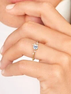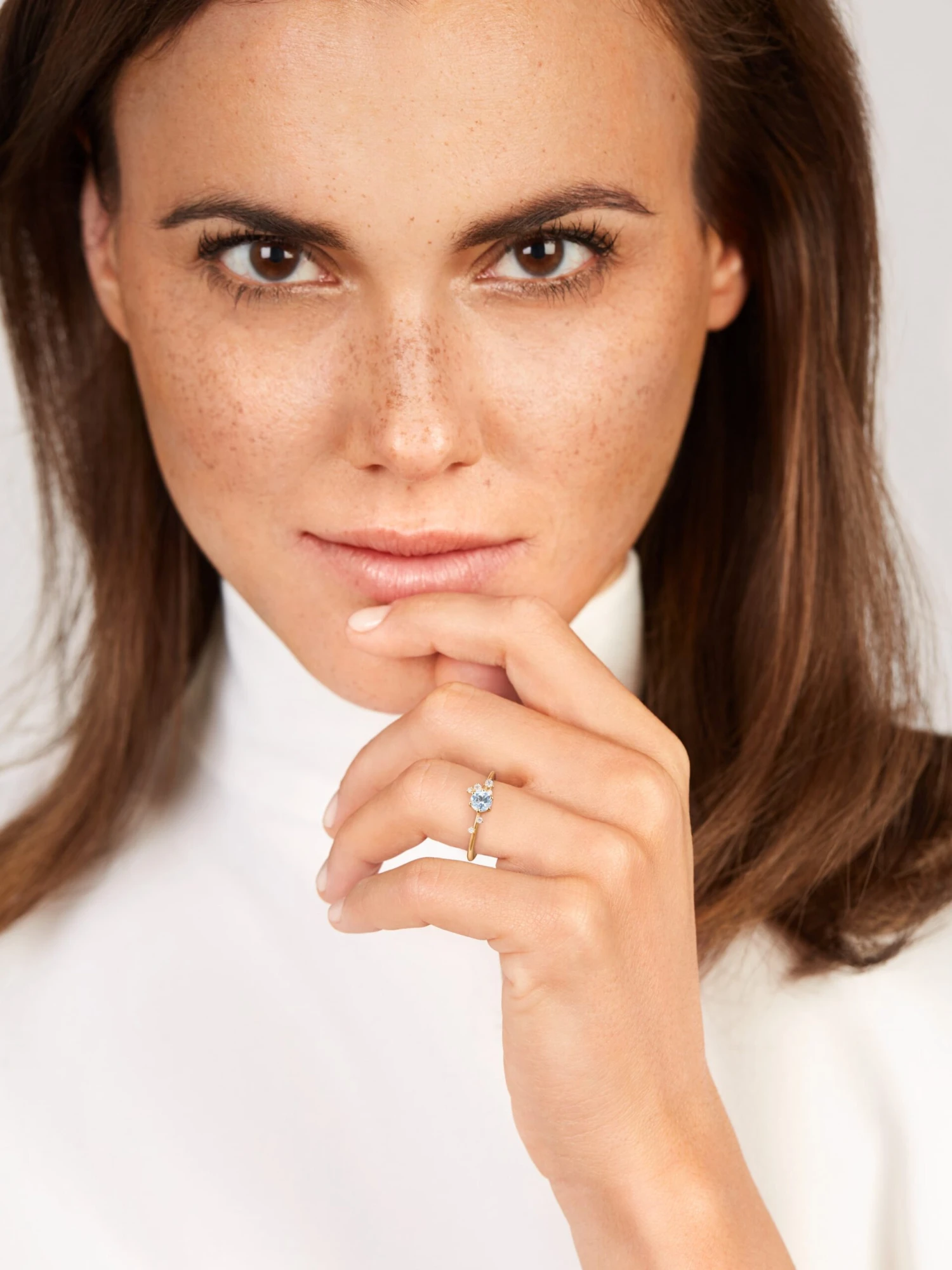 A tender temptation in pastel shades. The playfully arranged elements of the delicate Daily Garden BY KIM ring in 18k rose gold are reminiscent of a summer meadow in the early morning light. Six brilliant-cut diamonds of 0.09 ct scatter around the faceted topaz like little dewdrops. A loving present that brings joie de vivre and lightness to every moment of the day – not only in summer!