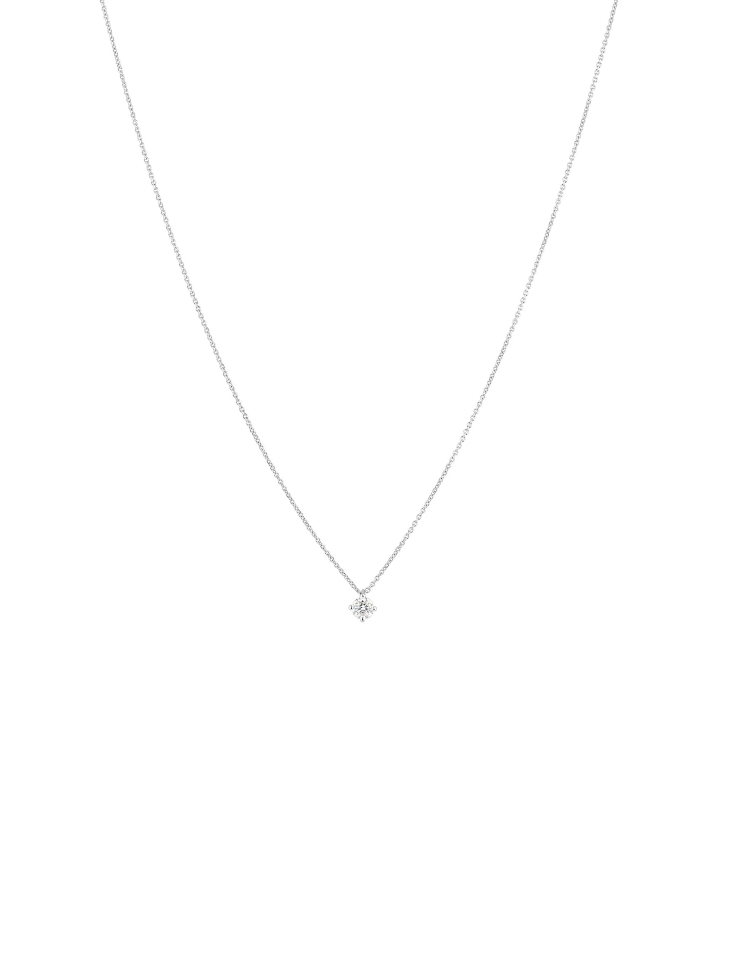 A sparkling 0.20 ct brilliant-cut diamond adorns this slender cable chain. The elegant prong setting and subtle 18k white gold provide a perfect and effective background for the solitaire. The precious stone makes this jewelry piece a little treasure: Stylish, elegant and timeless this creation adds value to any wardrobe, be it for everyday, work or festive occasions.