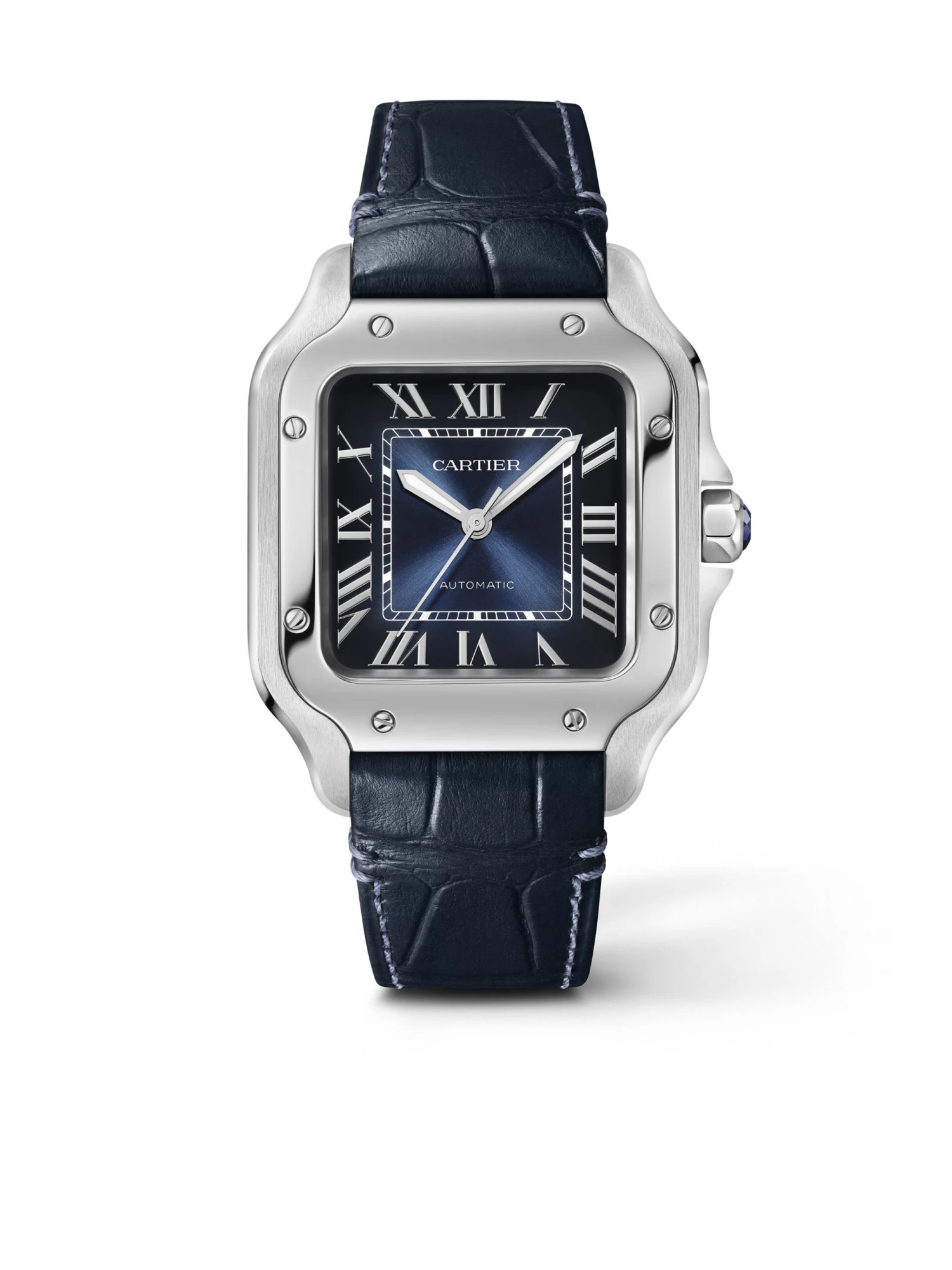 - Additional alligator leather strap in blue