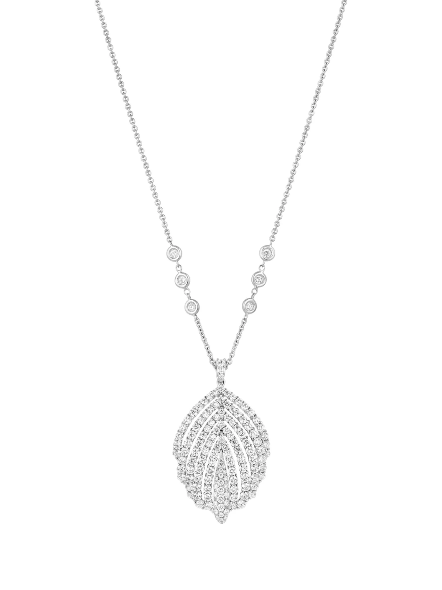 A waterfall of 151 dazzling brilliant-cut diamonds. With 5.34 ct. of diamonds in total, the Spotlight by Wempe Statements pendant captures everyoneโs attention. The circular fan made of 18 k white gold is attached to a cable chain with a length that can be adjusted through the shortening eyelet at 41 centimeters. A luxurious and eye-catching jewelry creation that makes for a captivating addition to your evening attire while appearing intricate and feminine despite its size.