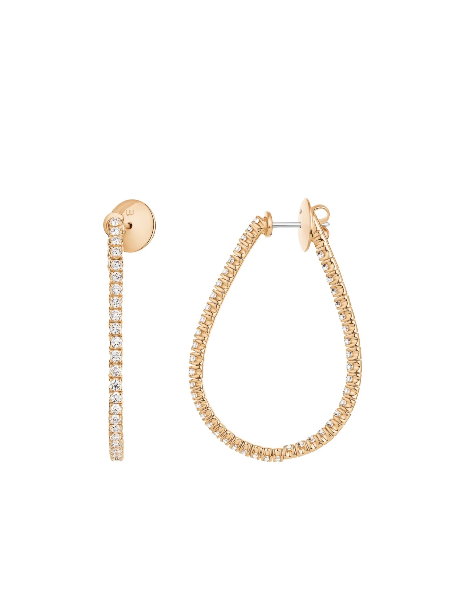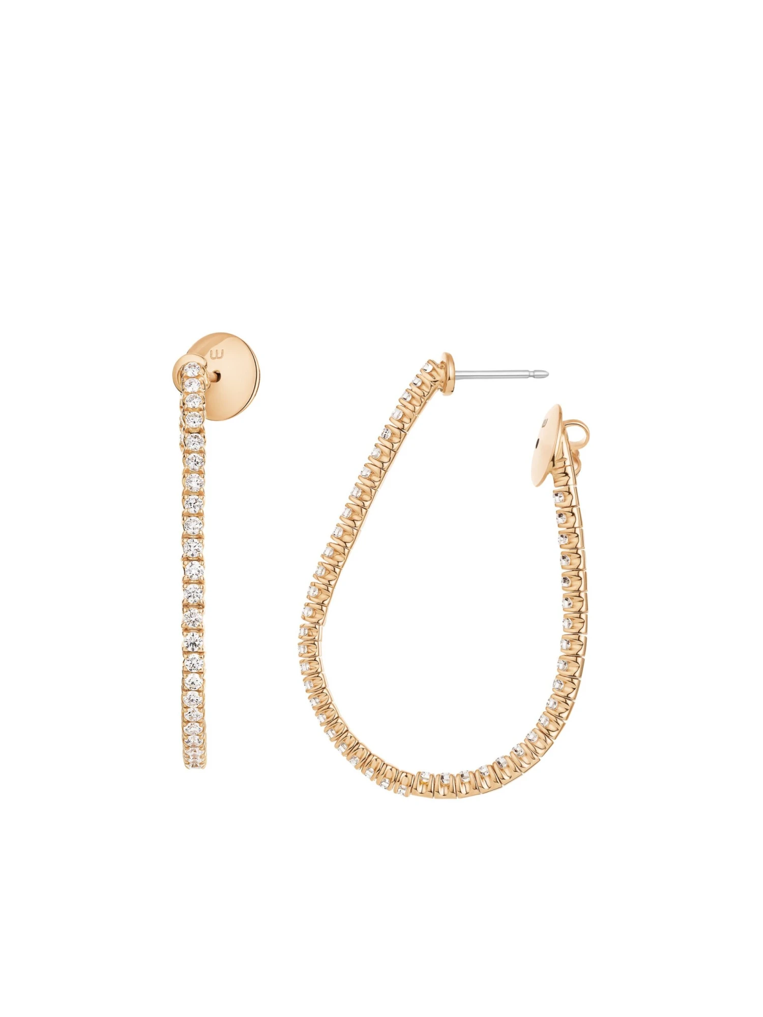 There is a trend that has experienced almost maximum popularity for years now, and it is hoop earrings of all variations. The large Electrify by Wempe Casuals hoop earrings surprise with a flexible hoop made of premium 18 k rose gold, which gives the earrings their soft oval shape. 90 brilliant-cut diamonds weighing 2.33 ct. add to the radiance of their wearer. With a length of 4.20 centimeters, they add an extravagant note when wearing your hair up. Whether worn casually with a blouse or matched elegantly with an evening dress, these earrings suit any outfit.